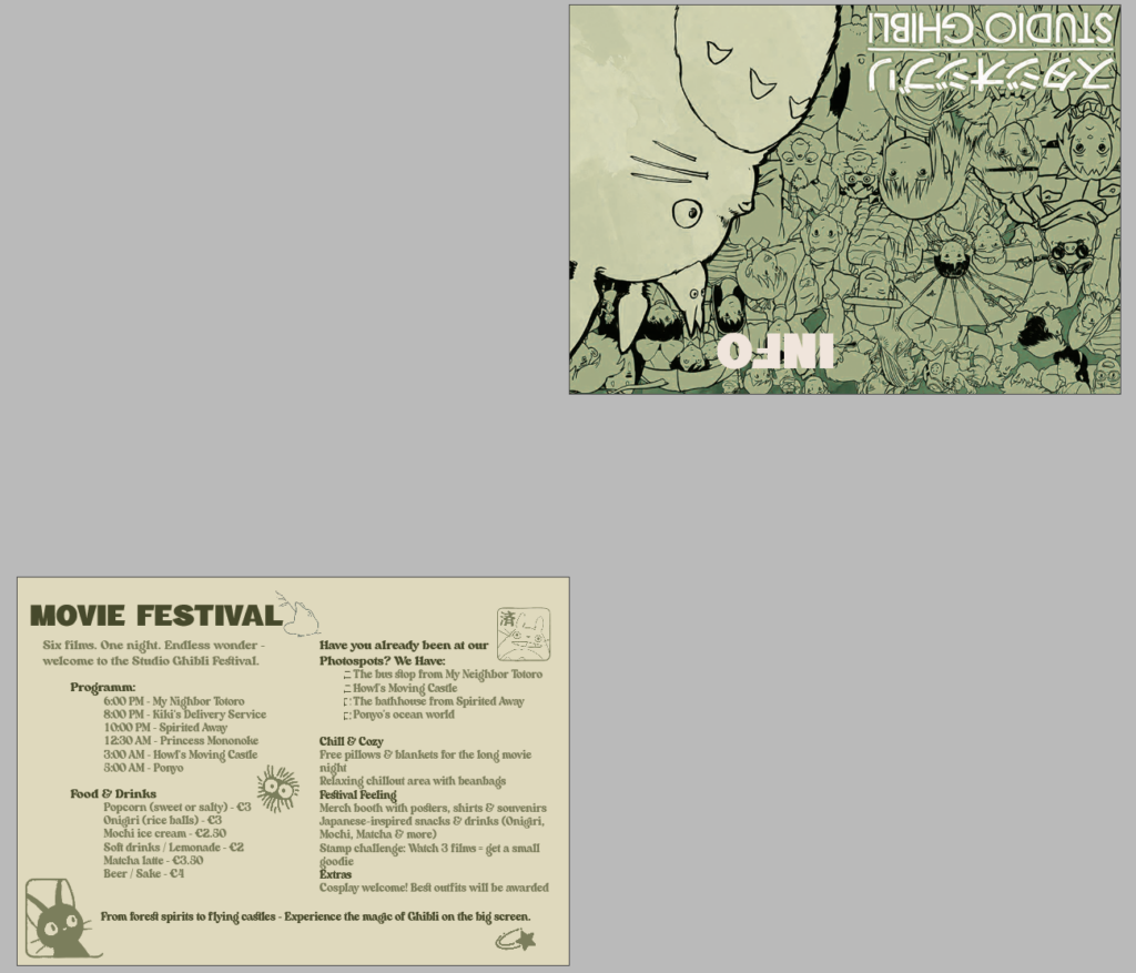 Der Flyer zu unserem neuen Filmfestival. Die wichtigstenInformationen werden weiter gegeben und mit Illustrationen geschmückt.